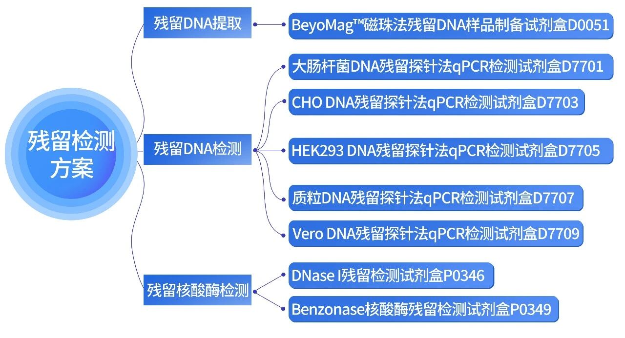 碧云天提供生物制品残留检测全方位解决方案,包括残留DNA提取、多种残留DNA检测和残留核酸酶检测,全方位为助力生物医药开发质量控制。