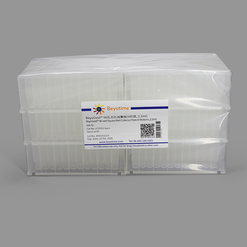 | FCP013-24pcs | BeyoGold™ 96孔方孔收集板(V形底, 2.2ml) | 6块/包, 24块/盒 | 178.00元 |
