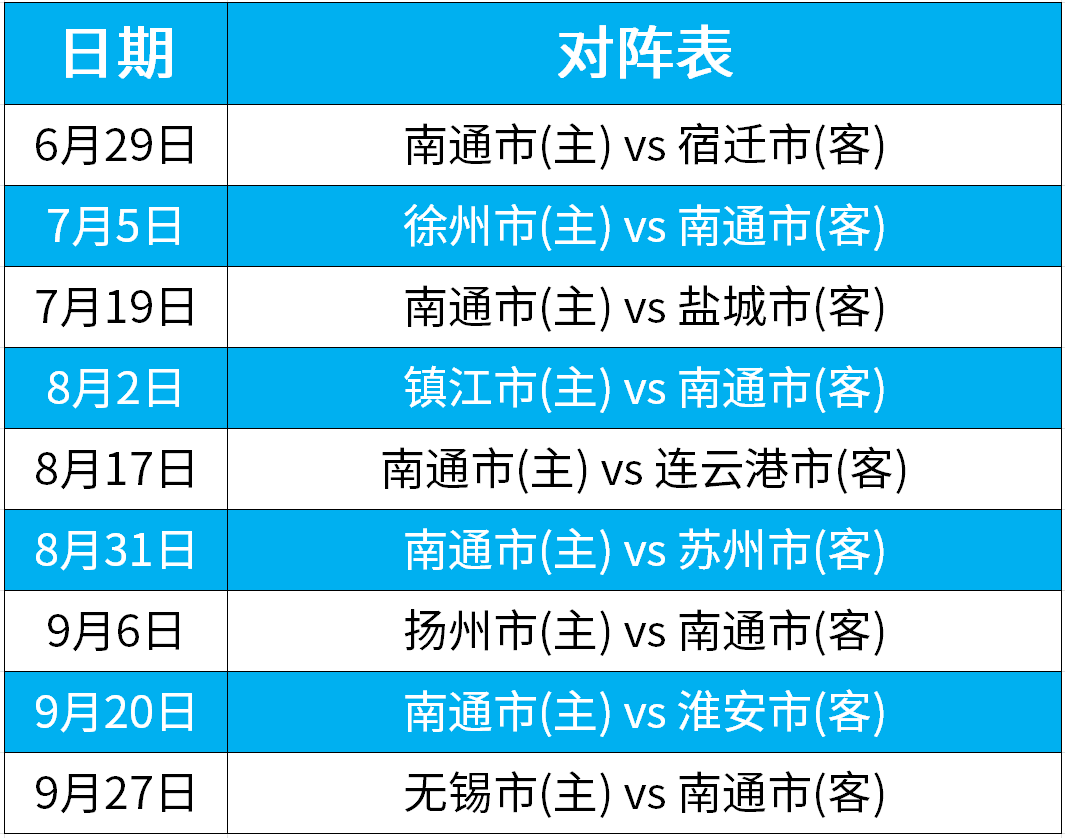 文末可查看南通队赛程表。