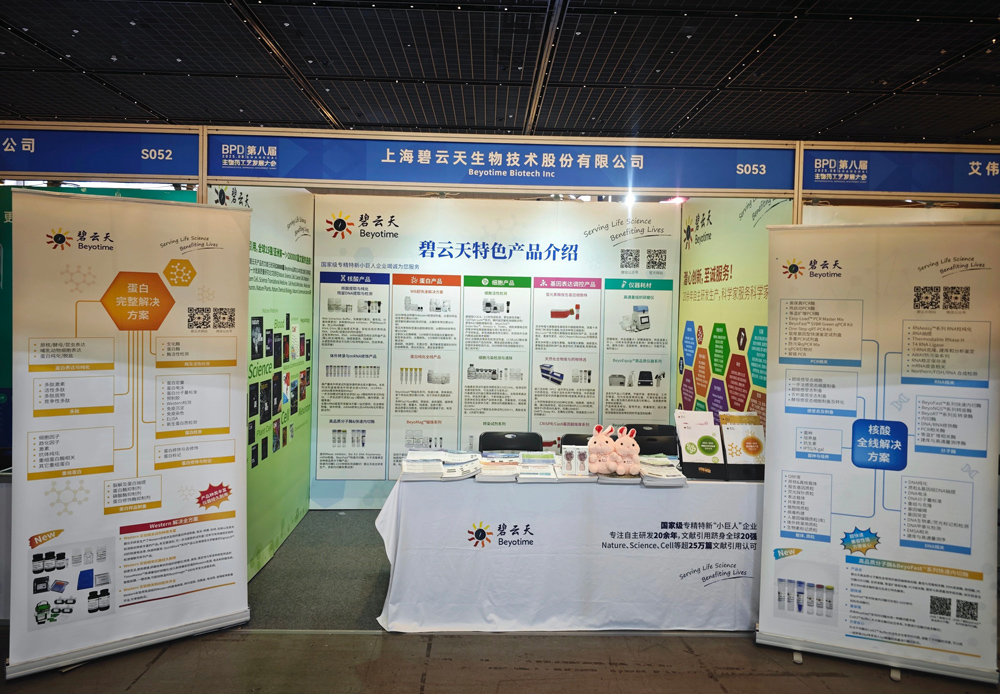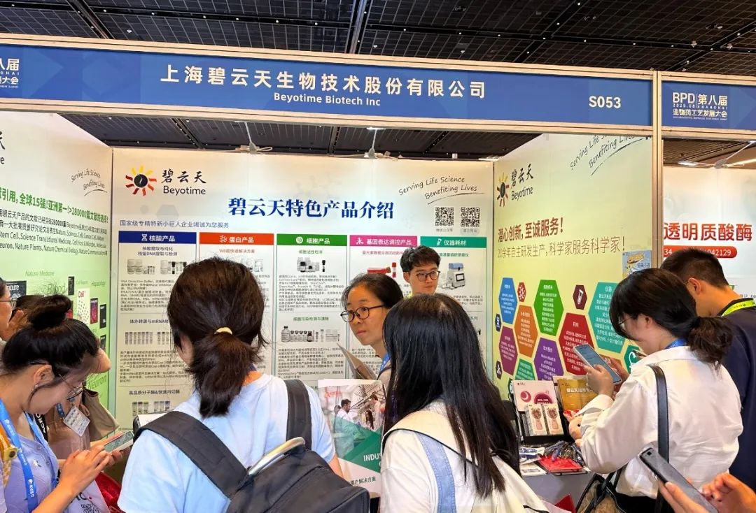 BPD第八届生物药工艺发展大会已于2025年8月8日在上海浦东新区张江科学会堂圆满收官。碧云天生物作为展商全程参与,在现场与参会人员进行了密切交流,收获颇丰。我们不仅与业界专家进行了富有成效的互动,更收获了来自参会学者、研发同行的宝贵认可。衷心感谢每一位支持者的信任与鼓励!