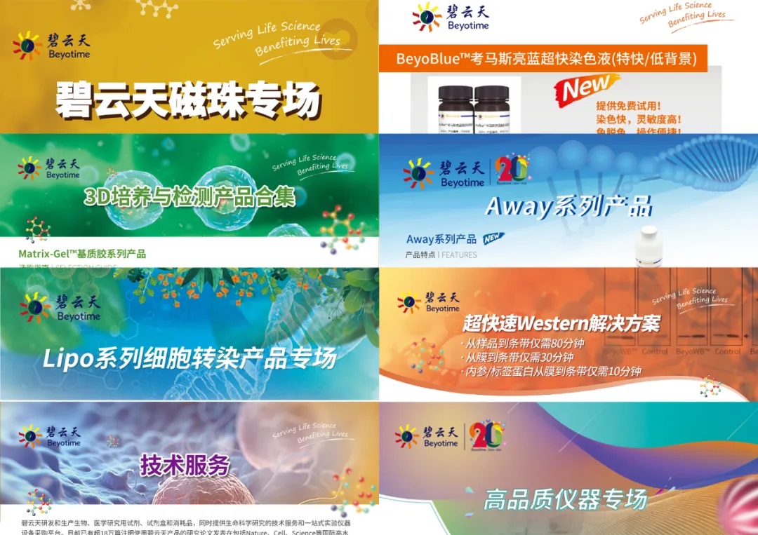碧云天为现场参会观众带去了诸多实用产品。例如核酸酶残留检测、高品质分子酶&快速内切酶、含示踪染料&防污染型qRT-PCR Kit、Away系列产品、无缝克隆试剂盒、分子酶产品、细胞转染试剂、荧光素酶报告基因检测试剂盒系列产品、超快速Western解决方案、考马斯亮蓝、超级ECL检测试剂盒、细胞培养产品、细胞活性与增殖检测产品、3D细胞球/类器官培养与检测、内毒素检测与去除试剂盒、支原体检测与清除、磁珠等,都能切实满足客户所需,吸引了不少客户前来咨询。