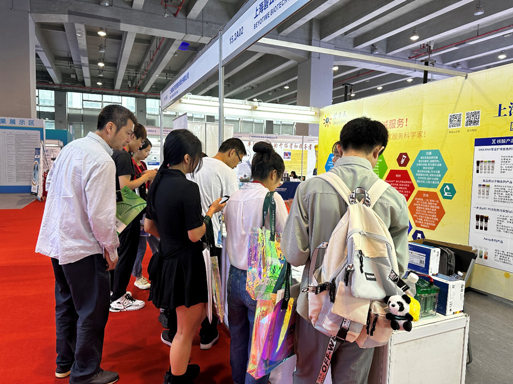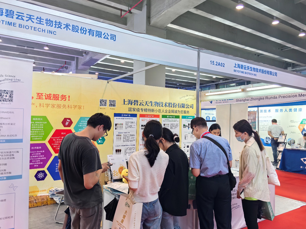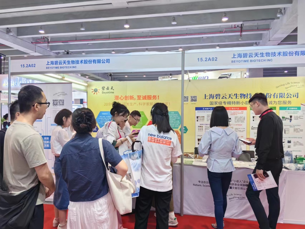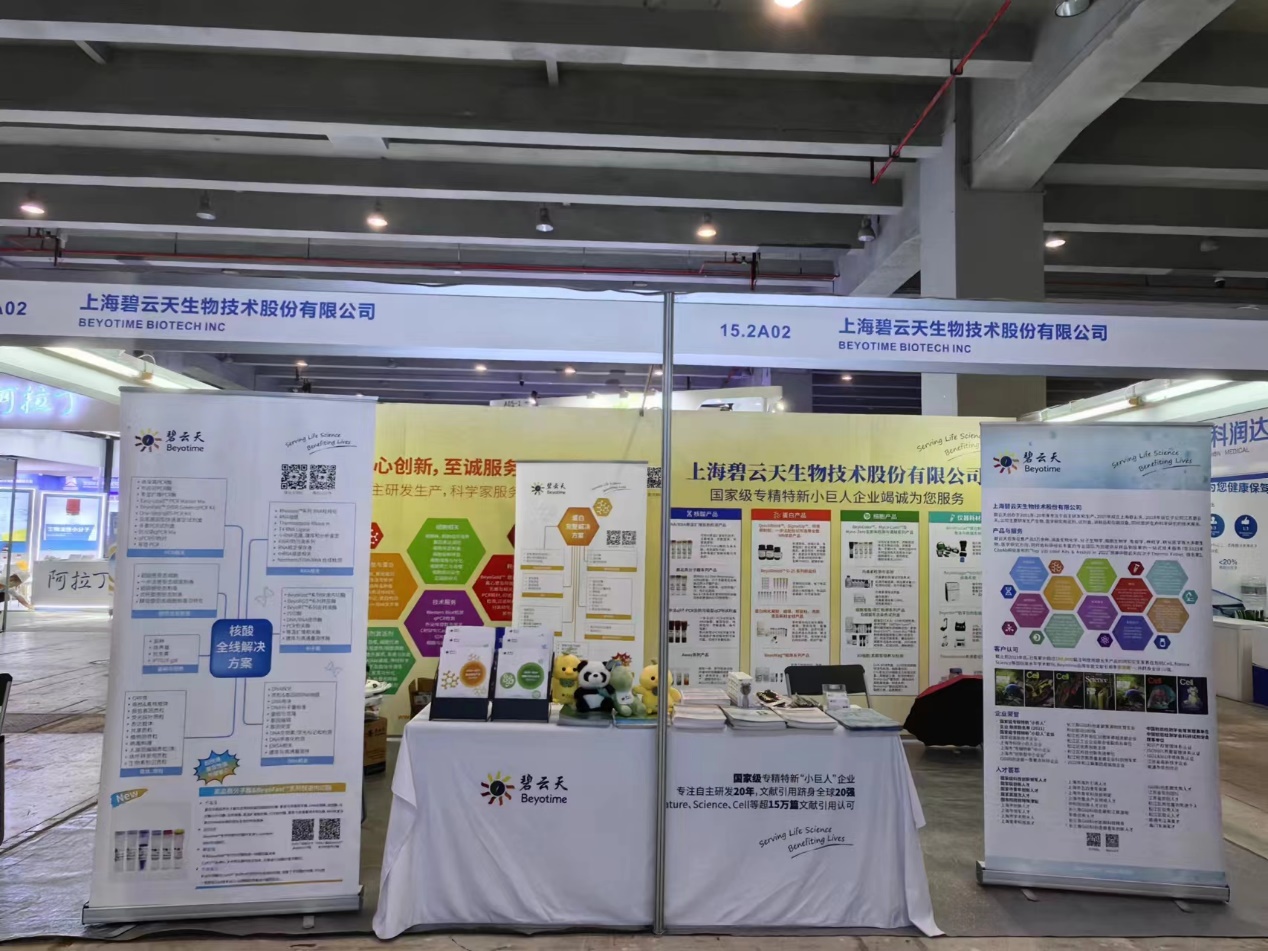 本次会议,我们为大家充分展示了碧云天近期上新的一系列重磅产品,例如百余种高品质分子酶、BeyoFast™系列快速内切酶、BeyoTryp™ Express Enzyme系列产品、内毒素及支原体检测与清除系列产品、3D细胞/类器官培养与检测系列产品、脱盐柱等蛋白纯化相关凝胶、磁珠、预装柱、洗脱液及耗材全线产品,还有众多常用的仪器、耗材等,吸引了不少客户驻足了解。