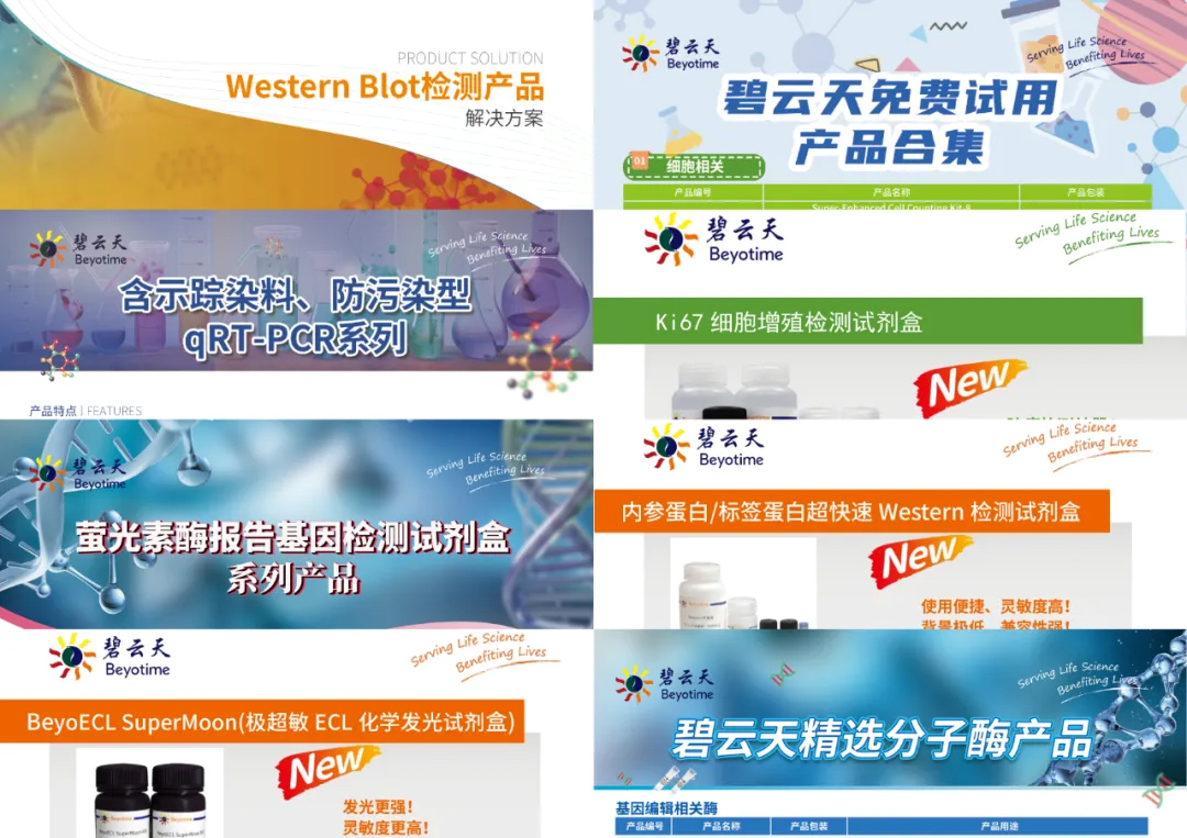 这次会议我们也为参会嘉宾带去了碧云天多款高品质产品,碧云天金牌产品单页合集,包括Western Blot检测产品、碧云天免费试用产品合集、含示踪染料、防污染型qRT-PCR系列、Ki67 细胞增殖检测试剂盒、萤光素酶报告基因检测试剂盒系列产品、内参蛋白/标签蛋白超快速 Western 检测试剂盒、BeyoECL SuperMoon(极超敏 ECL 化学发光试剂盒)、碧云天精选分子酶产品等,内容涵盖我们悉心整理的产品特点及优势,帮助大家全面了解碧云天同类产品,快速做出选择!现场获得了大家的广泛关注。