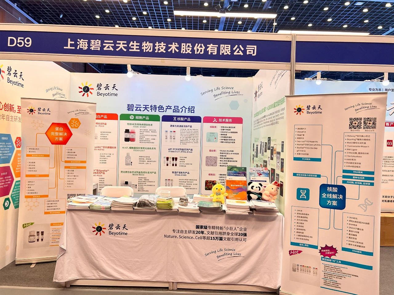碧云天作为国内一家20多年一直专注于自主研发科研用产品的企业,一直秉承用顶尖的技术、成熟的产品、热情的服务,服务生命科学,造福人民健康。此次展会现场我们为参会观众重点介绍了与本次会议主题相关的优质产品如:常规HE及特殊病理染色液、免疫组化专属BeyoIHC™系列病理抗体、荧光原位杂交试剂盒及探针系列产品、等温扩增系列产品 。产品种类多样、满足多领域、不同需求的客户,吸引众多参会人员来到展台与我们进行深入的交流和讨论。