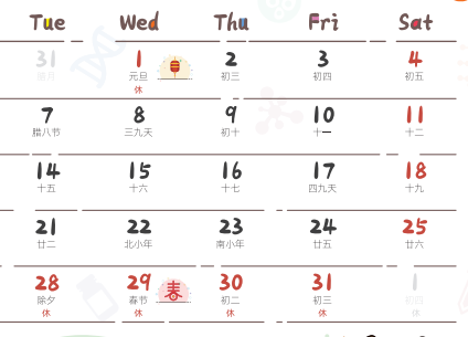 台历正面上一如既往地为您贴心标注了24节气、重点节日及一年当中的休假时间。