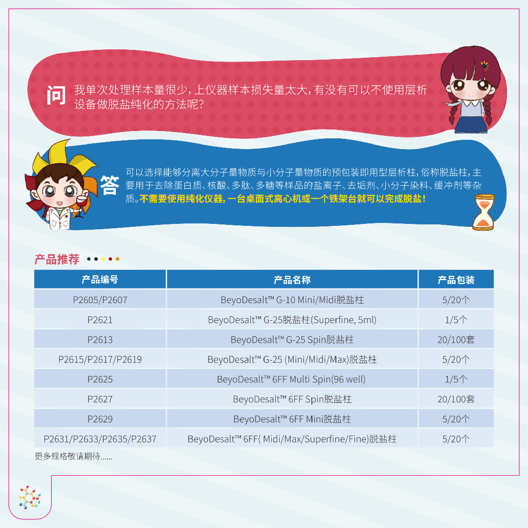 台历背面每月都有一个科研tips,以小云小天说的幽默方式引出我们日常实验中碰到的难题及解决方案,涵盖核酸、蛋白、细胞等各类信息,还贴心地为大家推荐了合适的产品,方便您快速得知所需要的信息。