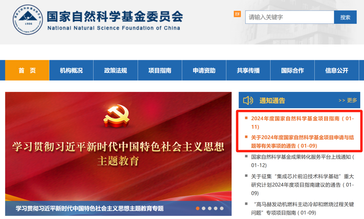 2024年1月9日,国家自然科学基金委发布通告:本年度项目集中接收工作于2024年3月1日开始,3月20日16时截止;4月29日前公布申请项目初审结果并受理复审申请。2024年1月11日,国家自然科学基金委员会正式发布《2024年度国家自然科学基金项目指南 》(以下简称《项目指南》)。《项目指南》作为国家自然科学基金资助工作的重要依据,也是国家自然科学基金申请人必读的参考文献。