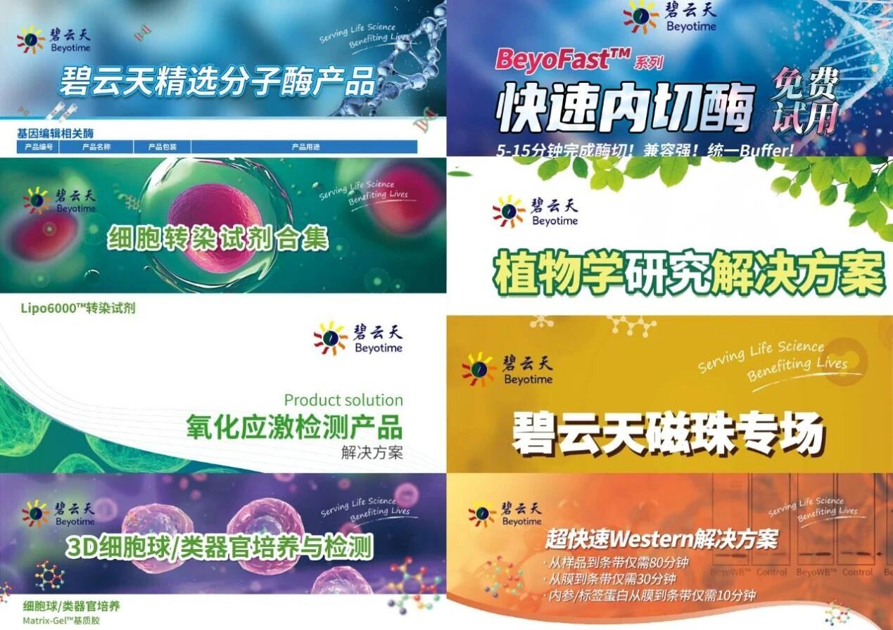 本次校园行,我们集中展示了碧云天生物的多款明星产品与解决方案,详尽的产品单页为核酸、蛋白及细胞层面的研究提供一站式试剂与耗材选择,全力为科研保驾护航,助力实验成功。