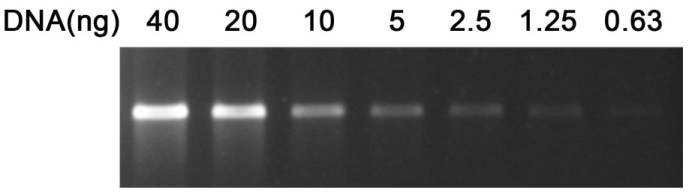 图1. 不同量DNA样品使用D0076 InstantView™红色荧光DNA上样缓冲液(6X, 溴酚蓝)上样后的电泳效果图。