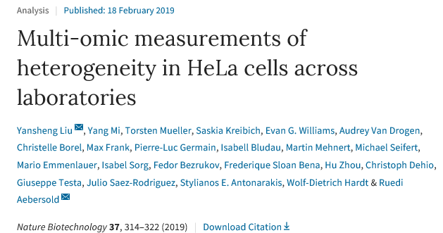发表在Nature Biotechnology上关于Hela细胞系的研究结果显示