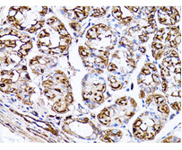 Fig3. Immunohistochemistry of paraffin-embedded human stomach using β-Actin Mouse Monoclonal Antibody(AF5001) at dilution of 1:50 (40x lens).
