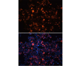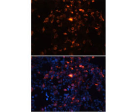 Fig2. Immunofluorescence analysis of 293T cells using Beyotime Antibody. Blue: DAPI for nuclear staining.