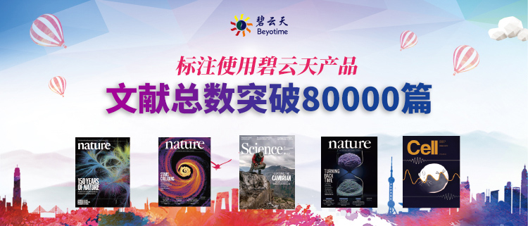 过去一年间,已有多篇Nature、Science和Cell以及近百篇CNS子刊论文注明使用了碧云天产品!碧云天产品受到越来越多顶级科学家以及超一流学术期刊的认可!碧云天产品不断助力广大科研人员发表顶尖水平学术论文!