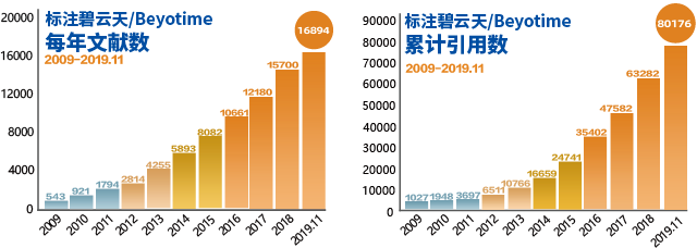 碧云天的所有员工为此感到欢欣和鼓舞,感到骄傲和自豪!标注使用碧云天产品的文献统计参见下图。