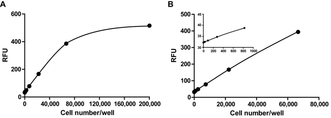 图1. Calcein AM细胞活性检测试剂盒用于检测MOLM13 (人急性髓原白血病细胞)活细胞数量的效果图。