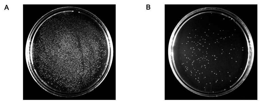 图3. 碧云天生产的Antarctic Phosphatase对EcoRI/BamHI双酶切后的pUC18载体进行脱磷处理可以大大提高克隆的阳性率。