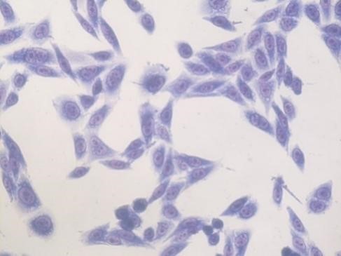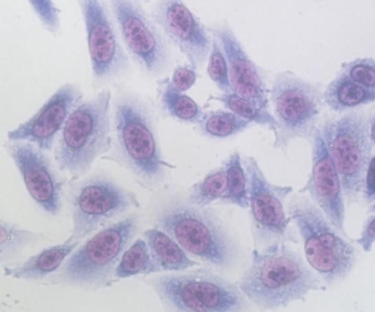 图1. 改良吉姆萨染色液与国外知名的S品牌相同产品的染色效果对比图。A. 碧云天的改良吉姆萨染色液用于HeLa细胞的染色效果。B. S品牌的改良Giemsa染色液用于HeLa细胞的染色效果。如图所示,改良吉姆萨染液染色后HeLa细胞的细胞质呈现蓝紫色,细胞核呈现紫红色。碧云天的改良吉姆萨染色液染色效果与S品牌同类产品的染色效果基本一致。注:实际实验结果可能会因样品及实验条件的不同而存在差异,本图仅供参考。