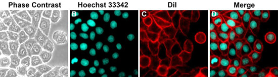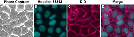 图1. 细胞膜远红外荧光染色试剂盒(DiD)对HeLa细胞的染色效果。