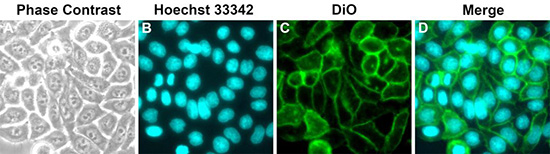 图2. 细胞膜绿色荧光染色试剂盒(DiO)对HeLa细胞的染色效果。