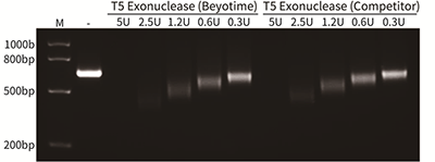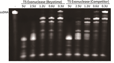 图2. 碧云天生产的T5 Exonuclease消化线性ssDNA的效果图