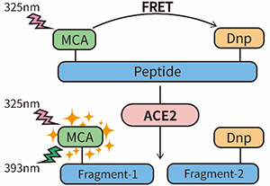 图1. 碧云天血管紧张素转换酶2 (ACE2)抑制剂筛选试剂盒检测原理图。