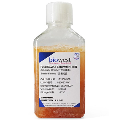 本胎牛血清(Fetal Bovine Serum, FBS)是Biowest原装进口产品(原产品编号为S1580),产地南美。Biowest所有血源都是由美国农业部和欧盟所认证的无疯牛病区域的屠宰场所提供,拥有ISO 9001 : 2015和ISO 13485 : 2016 认证,品质可靠;