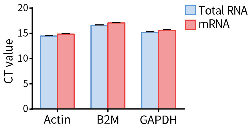 图2. BeyoMag™ Oligo (dT)25 Magnetic Beads (mRNA磁珠) (R0075)用于从总RNA中纯化mRNA的效果图。