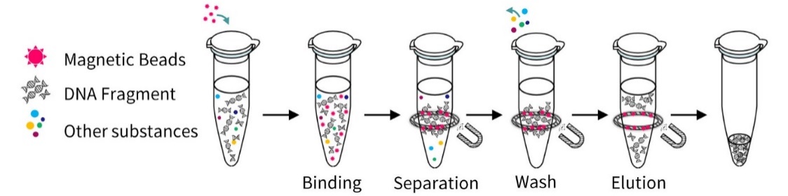 图1. 碧云天BeyoMag™ II DNA长度分选磁珠 (D0039)的实验流程示意图。