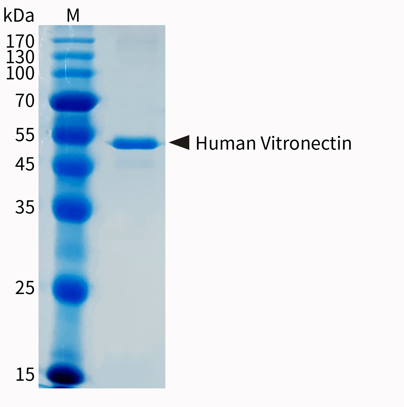 图1.碧云天BeyoEmbryo™ Human Vitronectin (C0318)的SDS-PAGE电泳检测效果图。