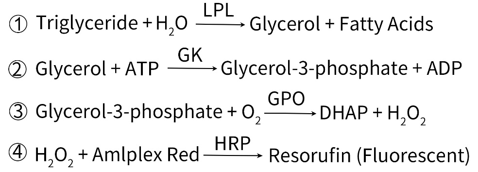 图7.碧云天Amplex Red甘油三酯检测试剂盒(S0219)检测甘油三酯的原理图。