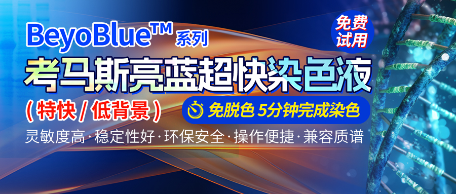 BeyoBlue™ Plus考马斯亮蓝超快染色液(特快)提供免费试用(P0003FT),感兴趣的同学们可以前往官网申领哦!
