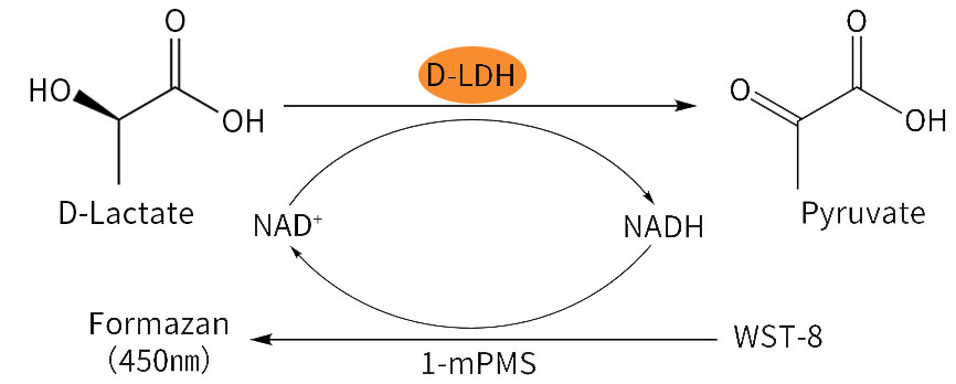 图1.碧云天D-乳酸/D-乳酸脱氢酶检测试剂盒(WST-8法)(S0204/P0392)的检测原理图。