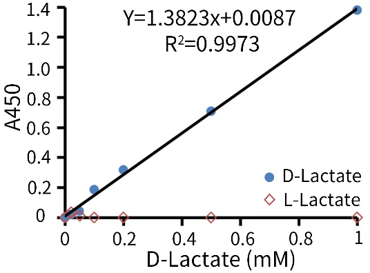 D-乳酸(S0204)的检测下限为20µM,线性范围为0.02-1mM(1-50nmol);