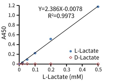 L-乳酸(S0208)的检测下限为20µM,线性范围为0.02-0.5mM(1-25nmol);