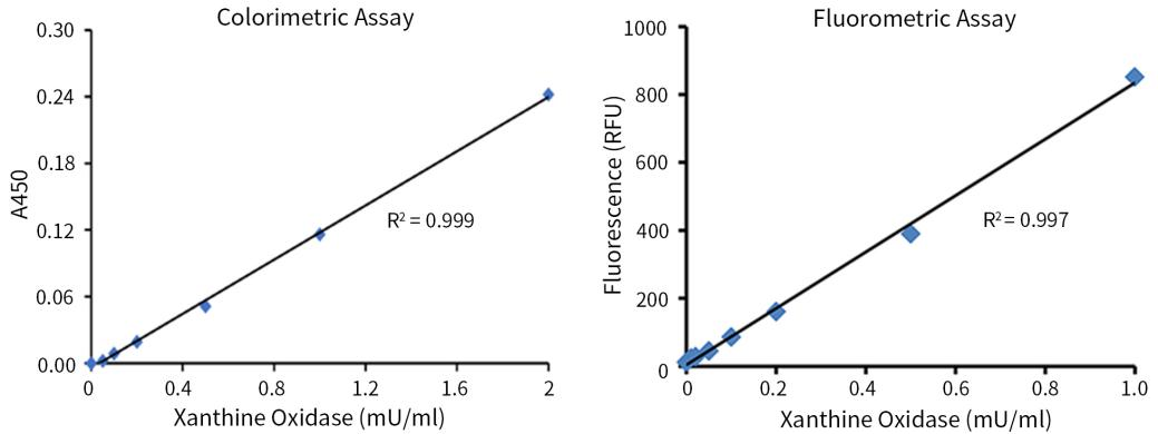 | S0110 | 黄嘌呤氧化酶活性 | WST-8法 | 0.2mU | 10-200mU/ml (0.2-40mU) |