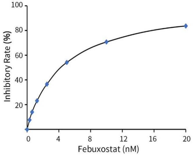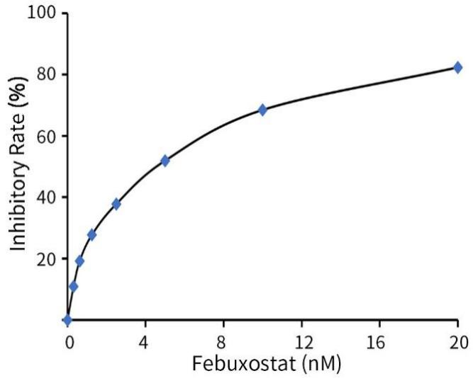 图6.碧云天黄嘌呤氧化酶抑制剂筛选试剂盒(WST-8法)(S0111)检测Febuxostat的效果图。图中Febuxostat的IC50约为5nm。