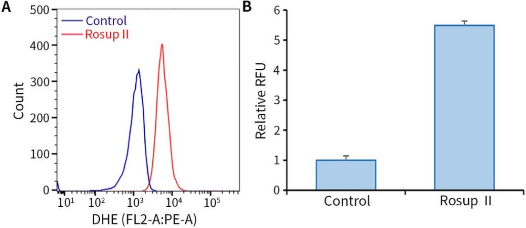 图1.碧云天超氧阴离子活性氧检测试剂盒(DHE) (S0064)检测L-929 (小鼠成纤维细胞)细胞内超氧阴离子活性氧的效果图。