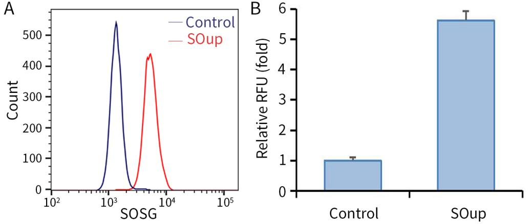 图2.碧云天单线态氧检测试剂盒(SOSG) (S0068)检测RAW264.7 (小鼠单核巨噬细胞)细胞内单线态氧的效果图。