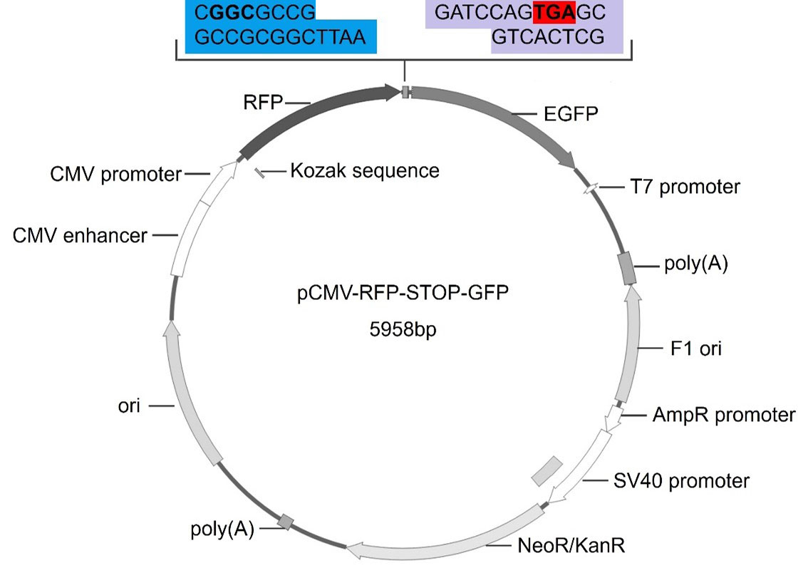 | D8414-100μg | pCMV-RFP-STOP-GFP (Surrogate Reporter) | 100μg |
