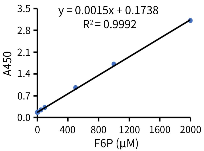 图1.碧云天果糖-6-磷酸检测试剂盒(WST-8法) (S0183)检测果糖-6-磷酸标准品的标准曲线。