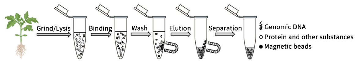 植物组织因其细胞壁结构复杂(含纤维素、半纤维素和木质素),机械强度高,难破裂,多酚、多糖、单宁等次生代谢物易与DNA结合形成不可逆复合物,影响DNA的释放与纯化。