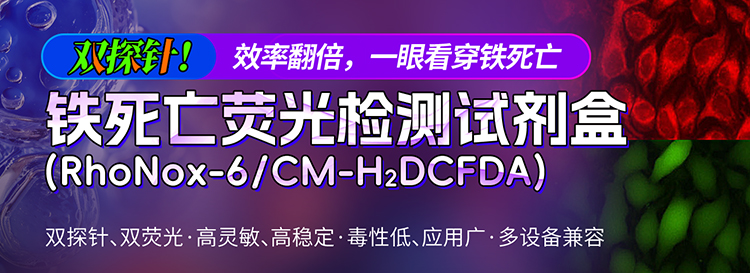 铁死亡荧光检测试剂盒(RhoNox-6/CM-H2DCFDA)(C1190):通过亚铁离子与活性氧的双指标进行检测,实现实时动态检测铁死亡,研究范围更为广泛,同样仅适用于活细胞;