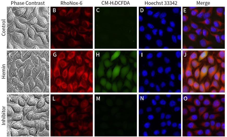 RhoNox-6是一种新型亚铁离子(Ferrous)红色荧光探针,对Fe2+具有高度选择性,有效避免其他金属离子干扰,与亚铁离子结合后,其荧光信号显著增强,从而实现对活细胞内游离亚铁离子的精准检测;
