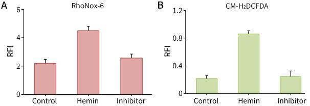 图1.碧云天铁死亡荧光检测试剂盒(RhoNox-6/CM-H2DCFDA)(C1190)用于荧光酶标仪检测的效果图。图A为亚铁离子的荧光信号,图B为ROS的荧光信号。