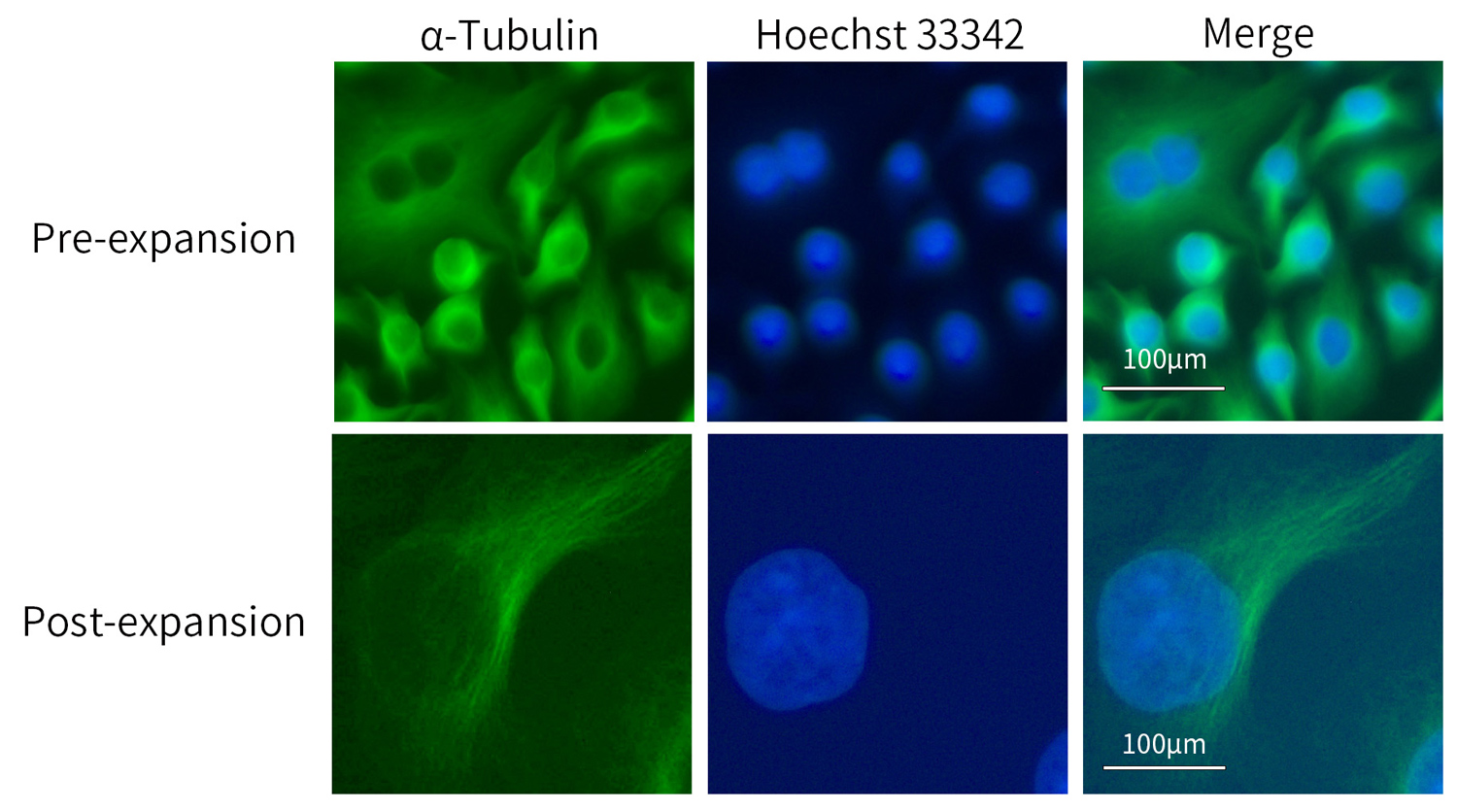 图1.碧云天BeyoExM™细胞膨胀显微试剂盒(C3611)对于微管蛋白的膨胀显微成像效果图