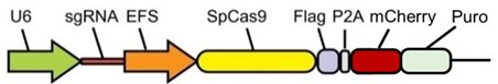 图2.表达sgRNA、Cas9、mCherry标签和puromycin抗性的pLenti-sgRNA质粒关键图谱信息。本质粒在细菌中为Amp抗性,全长约13000bp。