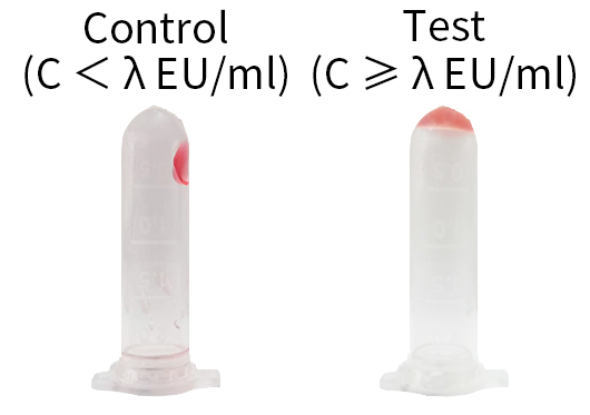 基于鲎试剂的酶促反应原理,最终反应形成凝胶,通过检测反应液是否形成坚实、稳定、不变形、不易沿内壁滑落的凝胶来进行样品内毒素浓度的半定量检测。