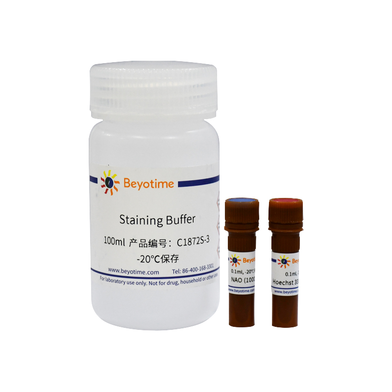 Staining Buffer经过过滤除菌处理,在使用时须注意避免微生物污染,否则很可能严重影响染色效果。如果Staining Buffer发生浑浊等明显的微生物污染,就不能继续使用。
