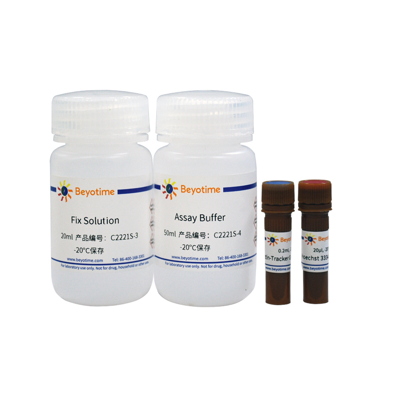 -20ºC保存,一年有效。其中Actin-Tracker Green-488 (100X)和Hoechst 33342 (1000X)须避光保存。