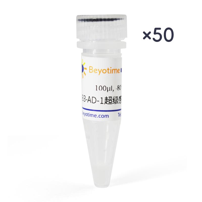 碧云天生产的BJ5183-AD-1超级感受态细胞,英文名BJ5183-AD-1 Super Competent Cells,是一种可以用于腺病毒系统质粒克隆并具有较高重组能力的E. coli BJ5183-AD-1即用型化学感受态细胞。使用PCAMBIA2301质粒进行热激活转化,在严格按照使用说明进行操作时,转化效率可以达到1.0±0.5×105cfu/μg DNA。